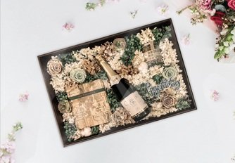Unique flower and wine gift boxes delicately arranged to surprise you.